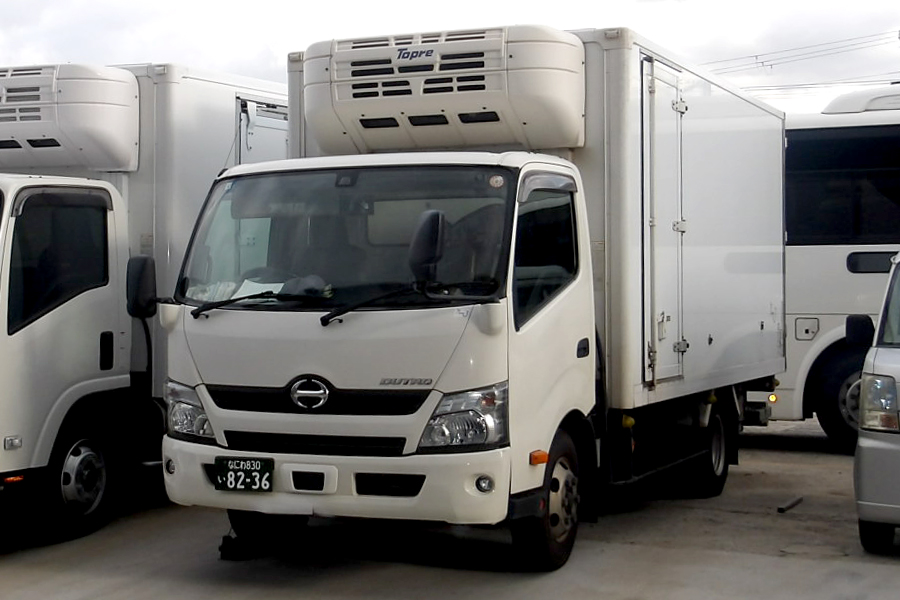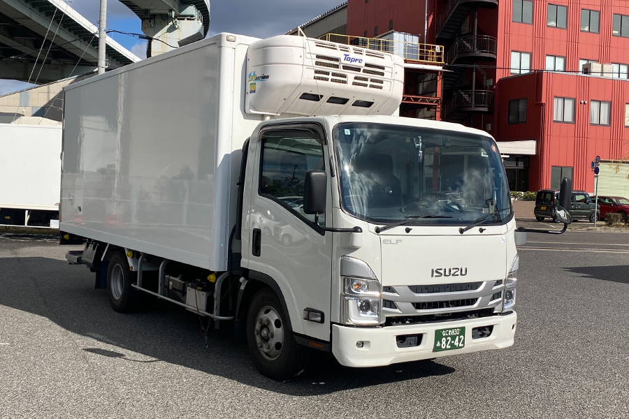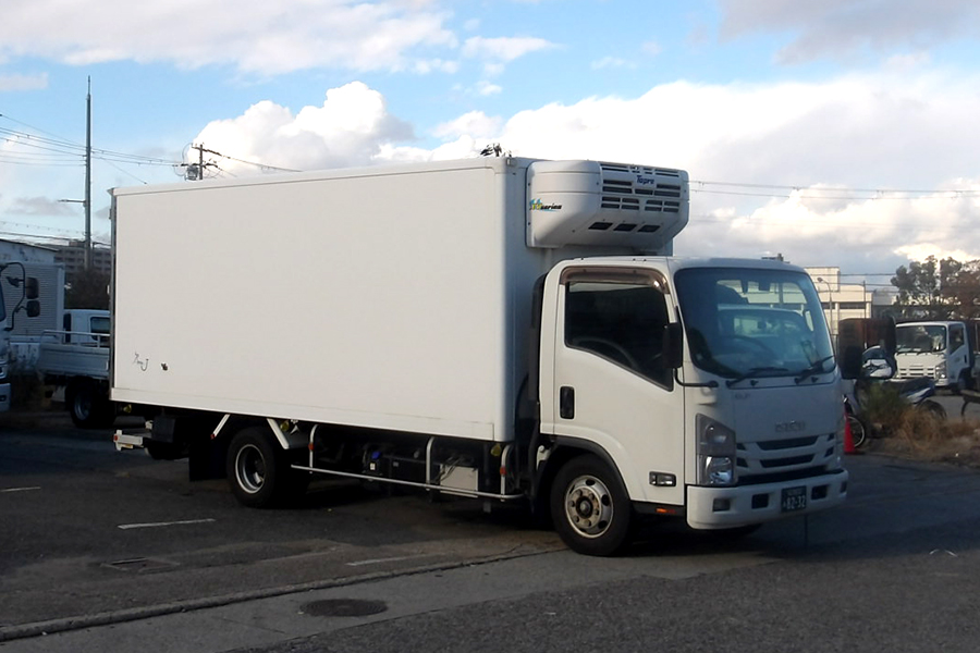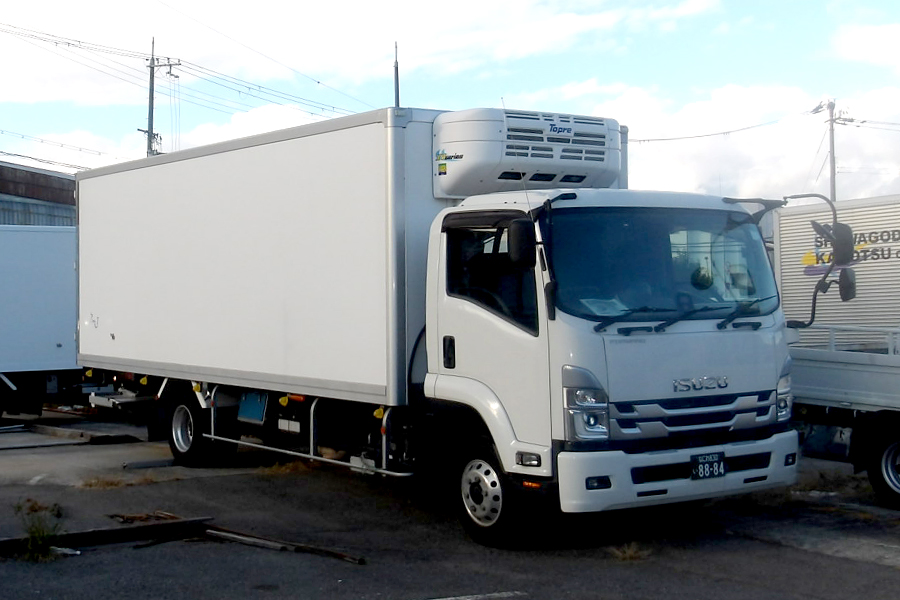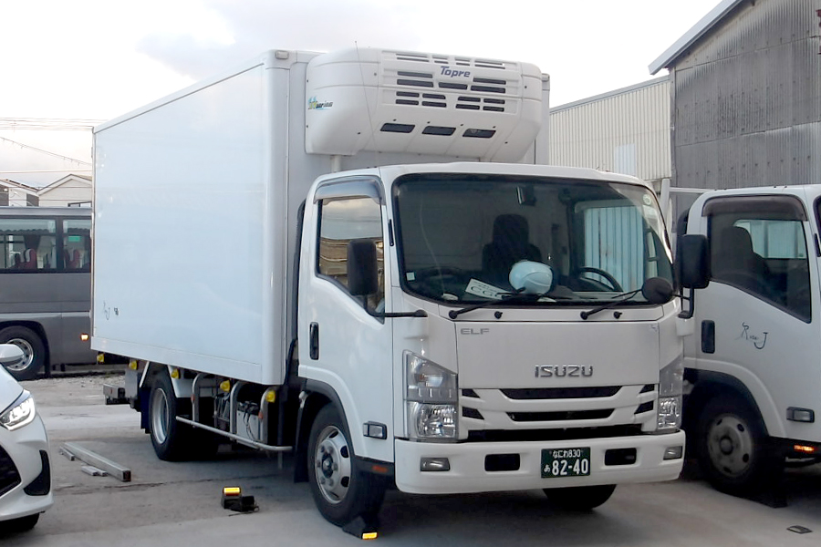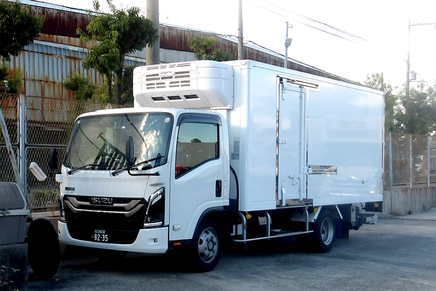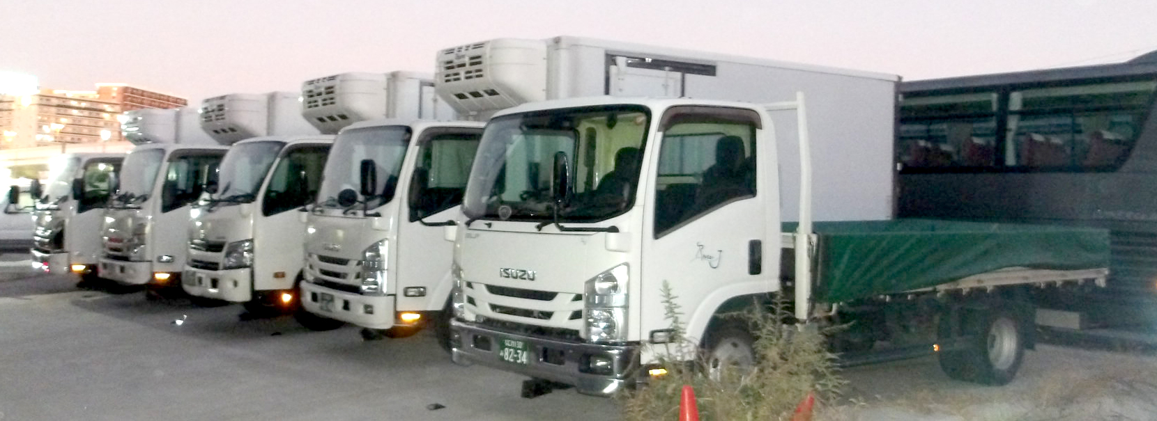 当社所有のトラックのご紹介。お客様の用途に合った冷蔵・冷凍車両をご用意して、あらゆる食材の新鮮輸送を心がけております。
