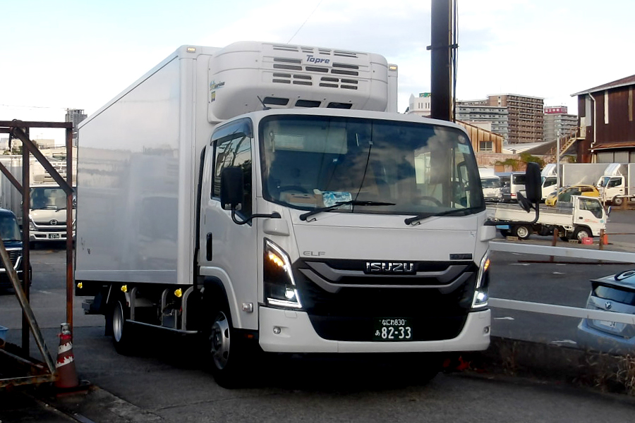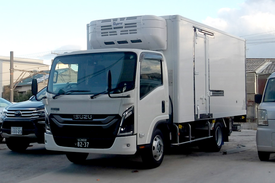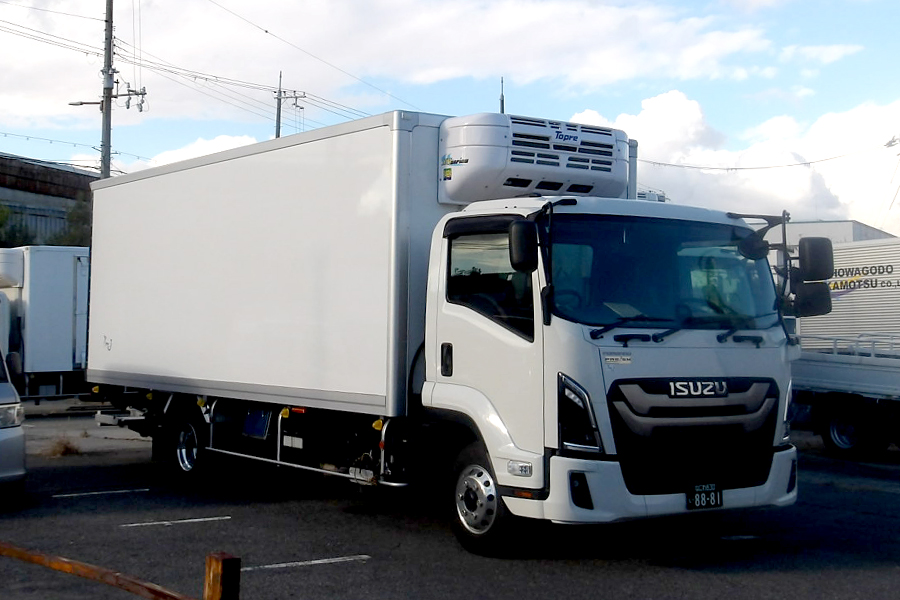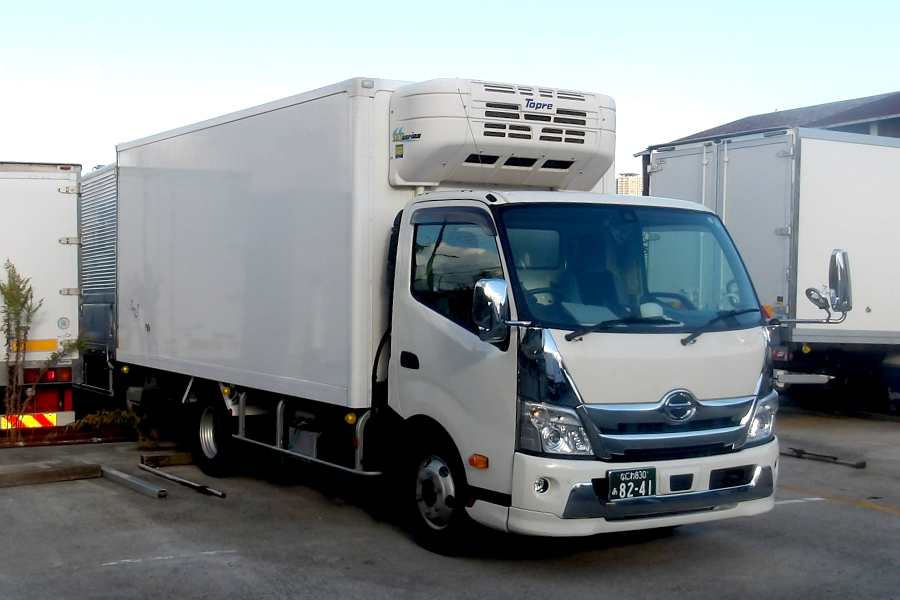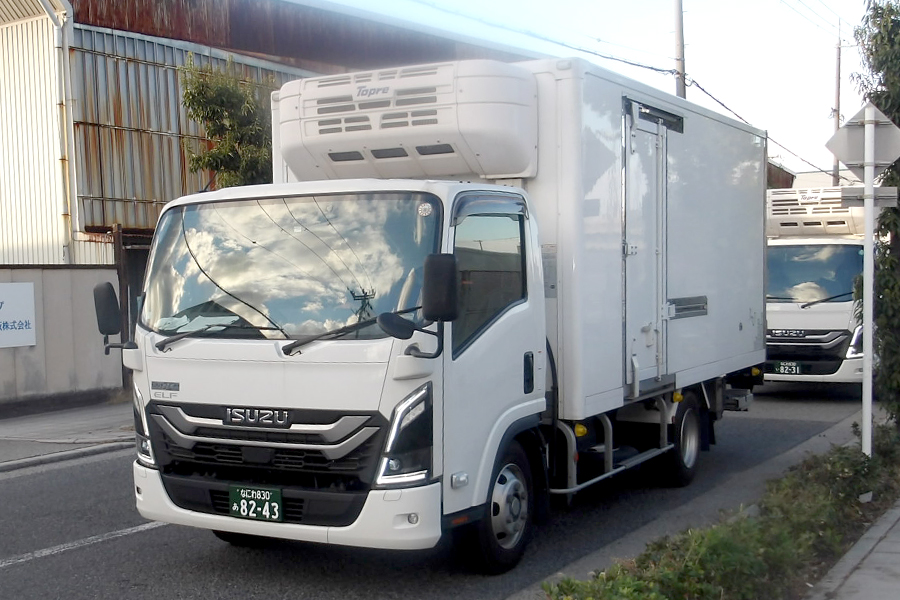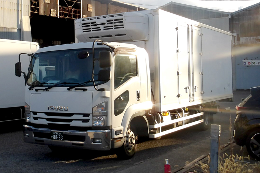 当社所有のトラックのご紹介。お客様の用途に合った冷蔵・冷凍車両をご用意して、あらゆる食材の新鮮輸送を心がけております。